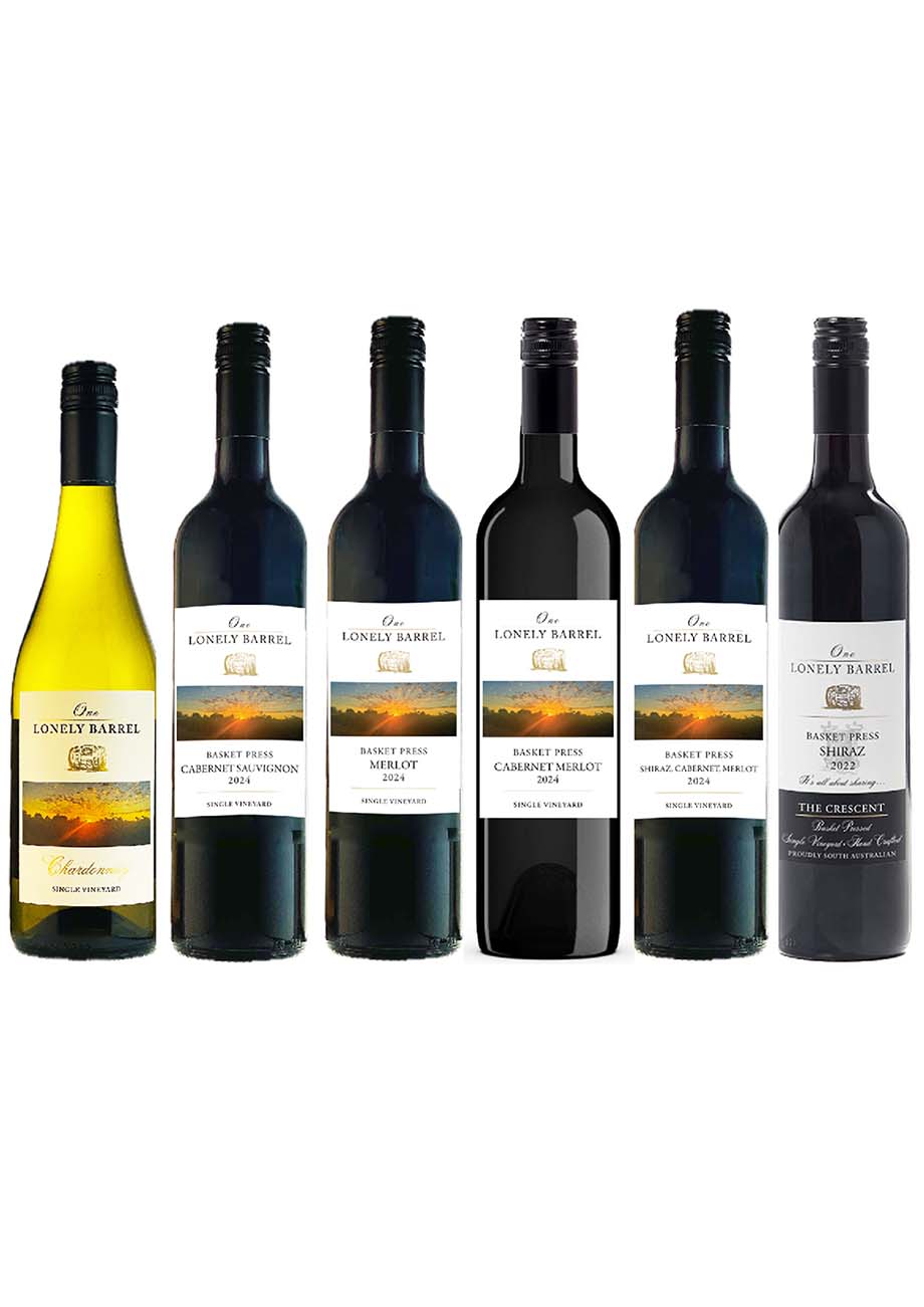 One Lonely Barrel Tasting 6 pack Basket Press Red Wines – Click on the Tasting 6 pack to view Club Member price & how to access it!